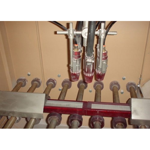 This system is available in dry and wet options. Air guns are located in typically to cleanse the part of any residue upon exit.
