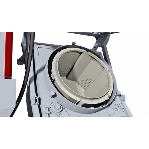 The drum may have a “ triangle” specific form in the centre, which creates a 3D movement, rolling of pieces as enable optimal blasting and processing of workpieces.