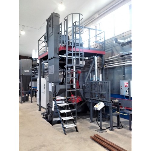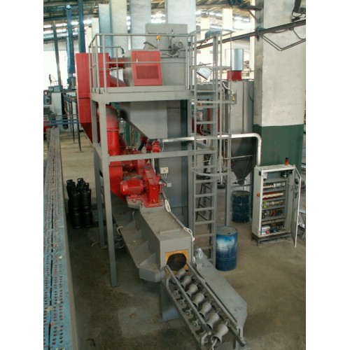 Standard equipment is included: PLC, display, automatic or manual mode, automatic start-up of throwing wheel, working hours counter, roller conveyor variable frequency drive, etc.